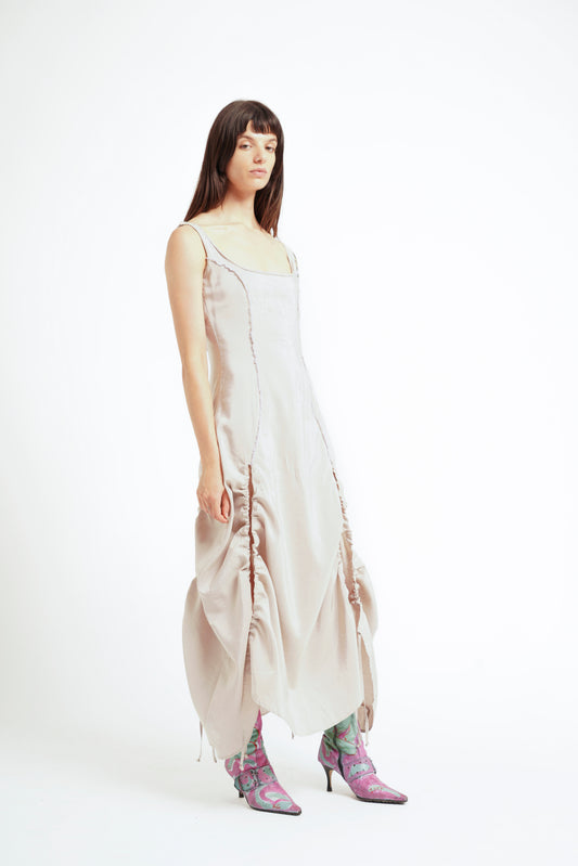 EMBROIDERED DRESS WITH GATHERED SLITS (made to order)