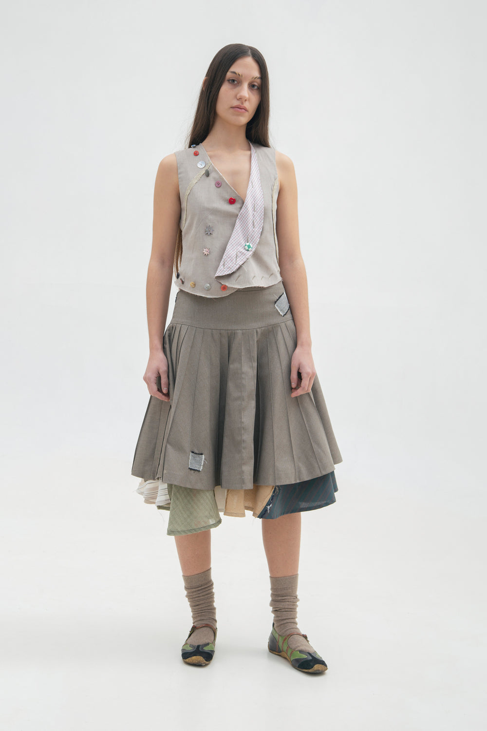 - Inside of the skirt is made of a patchwork of fabrics that will change in every reproduction.