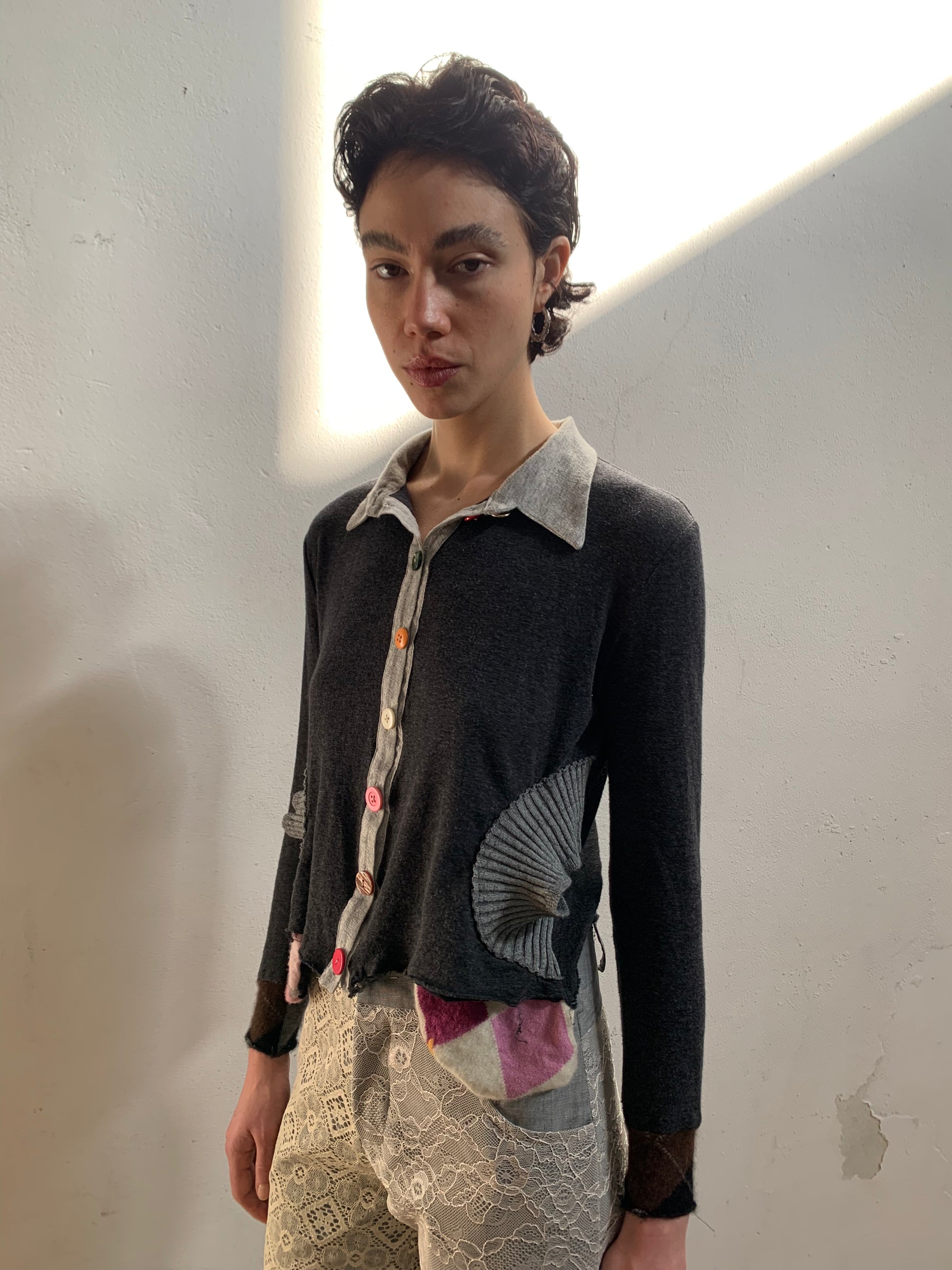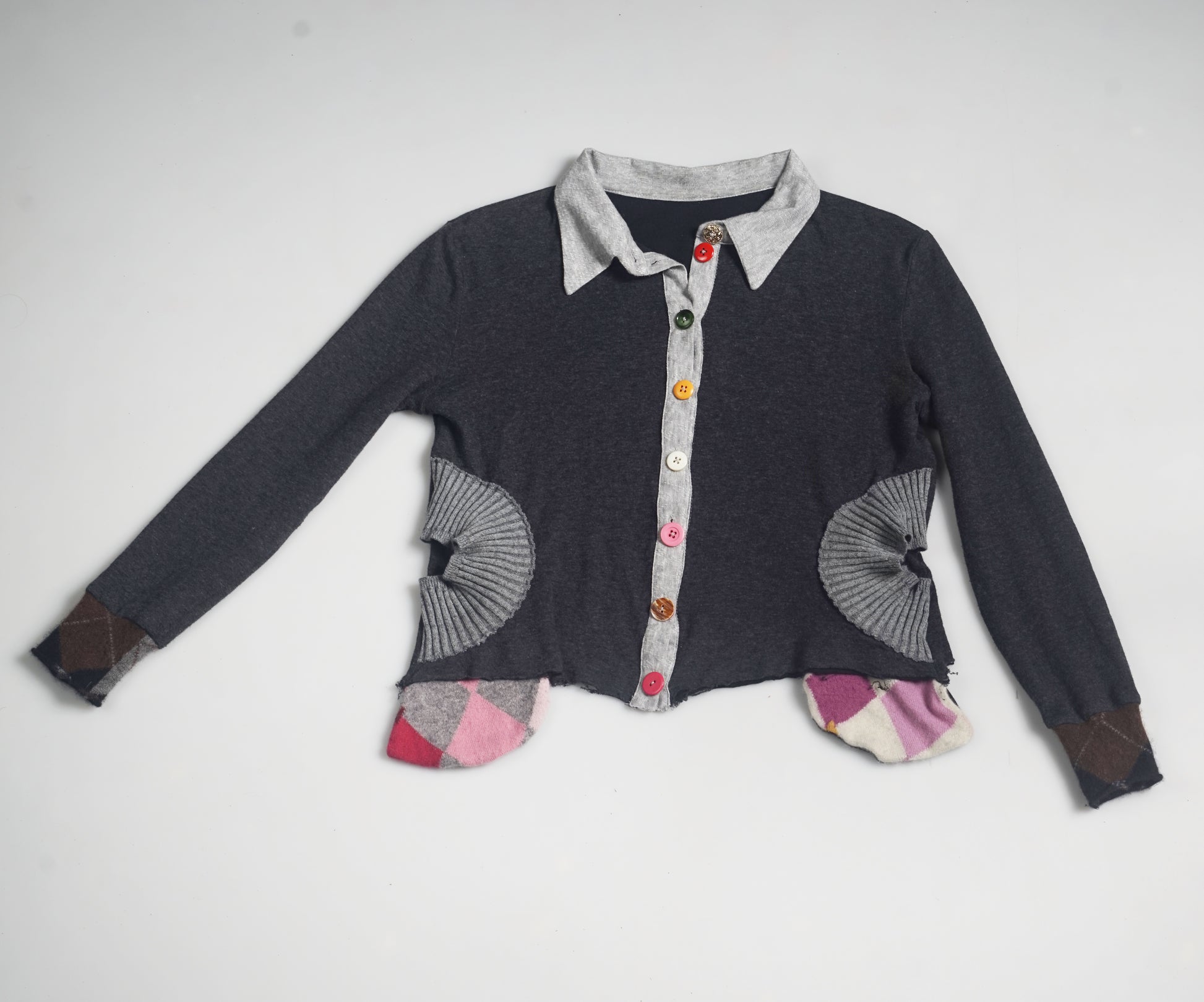 • Cuffs and pocket bags made from upcycled knit fabrics.
