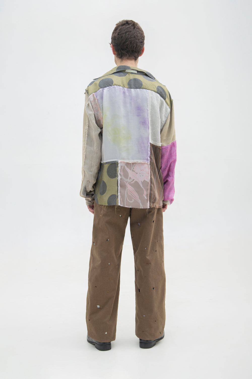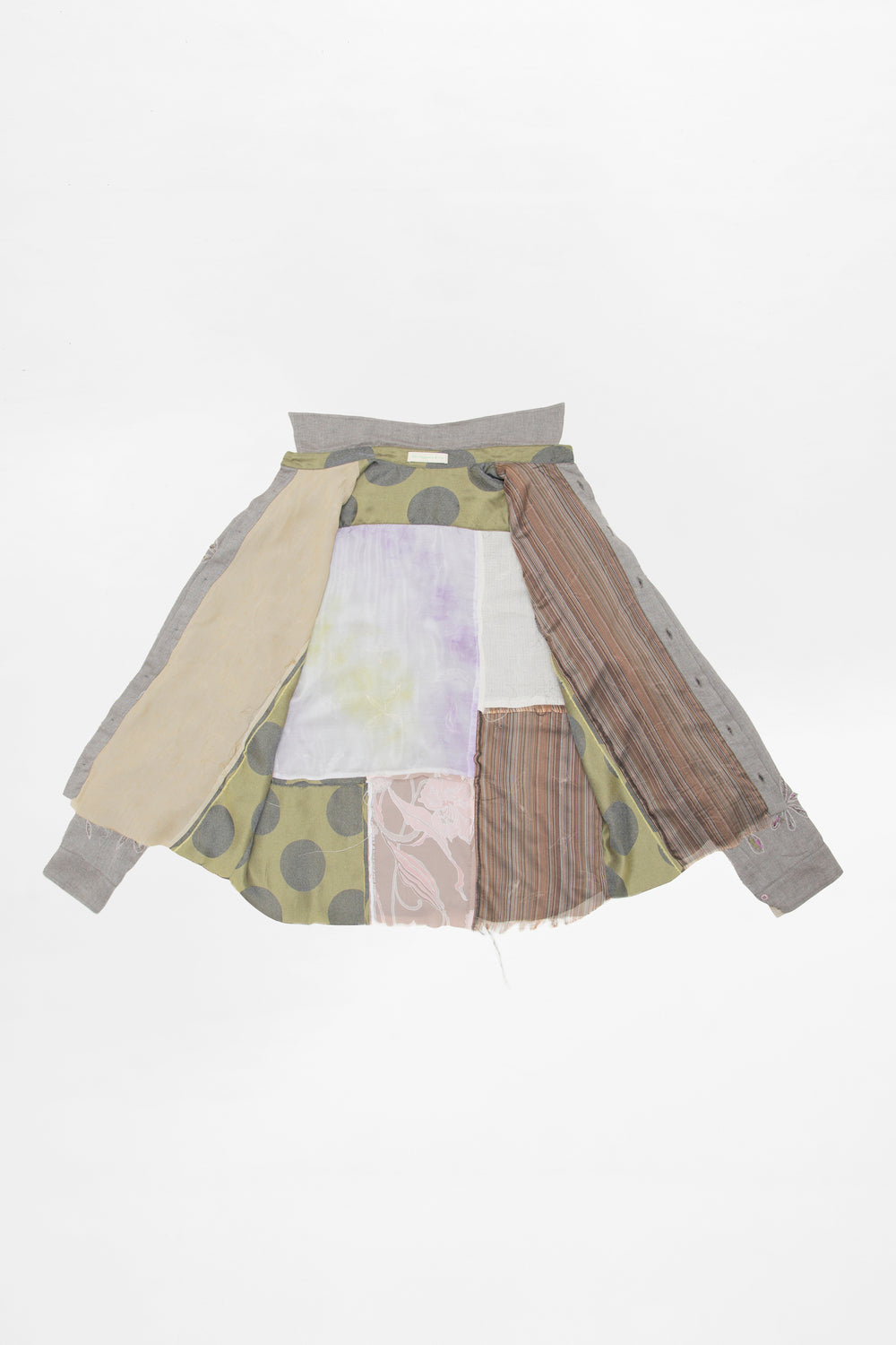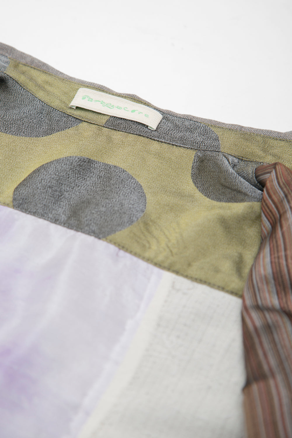 - Inside of the shirt made of patchwork of leftover fabrics.