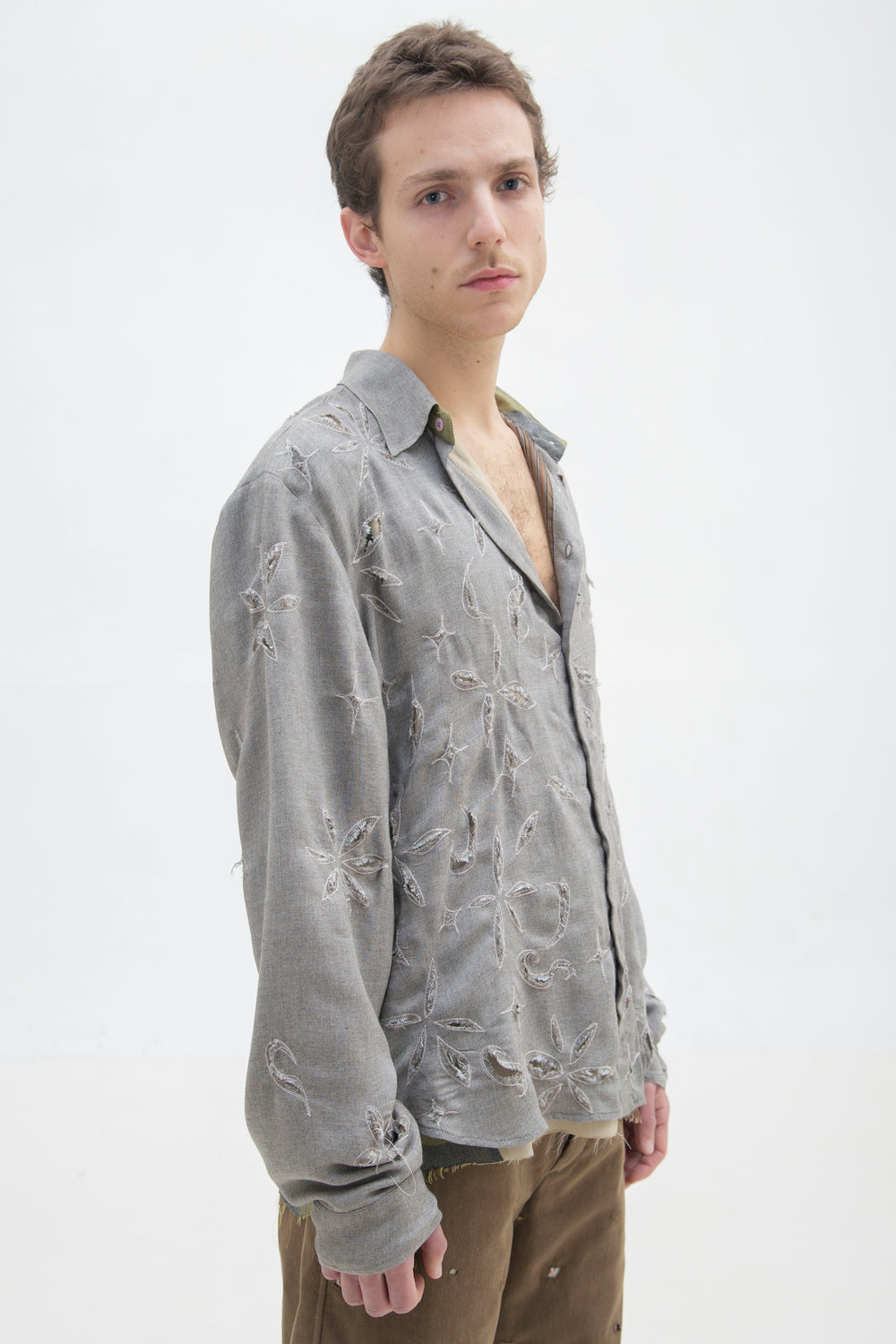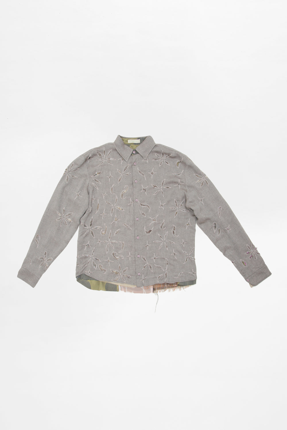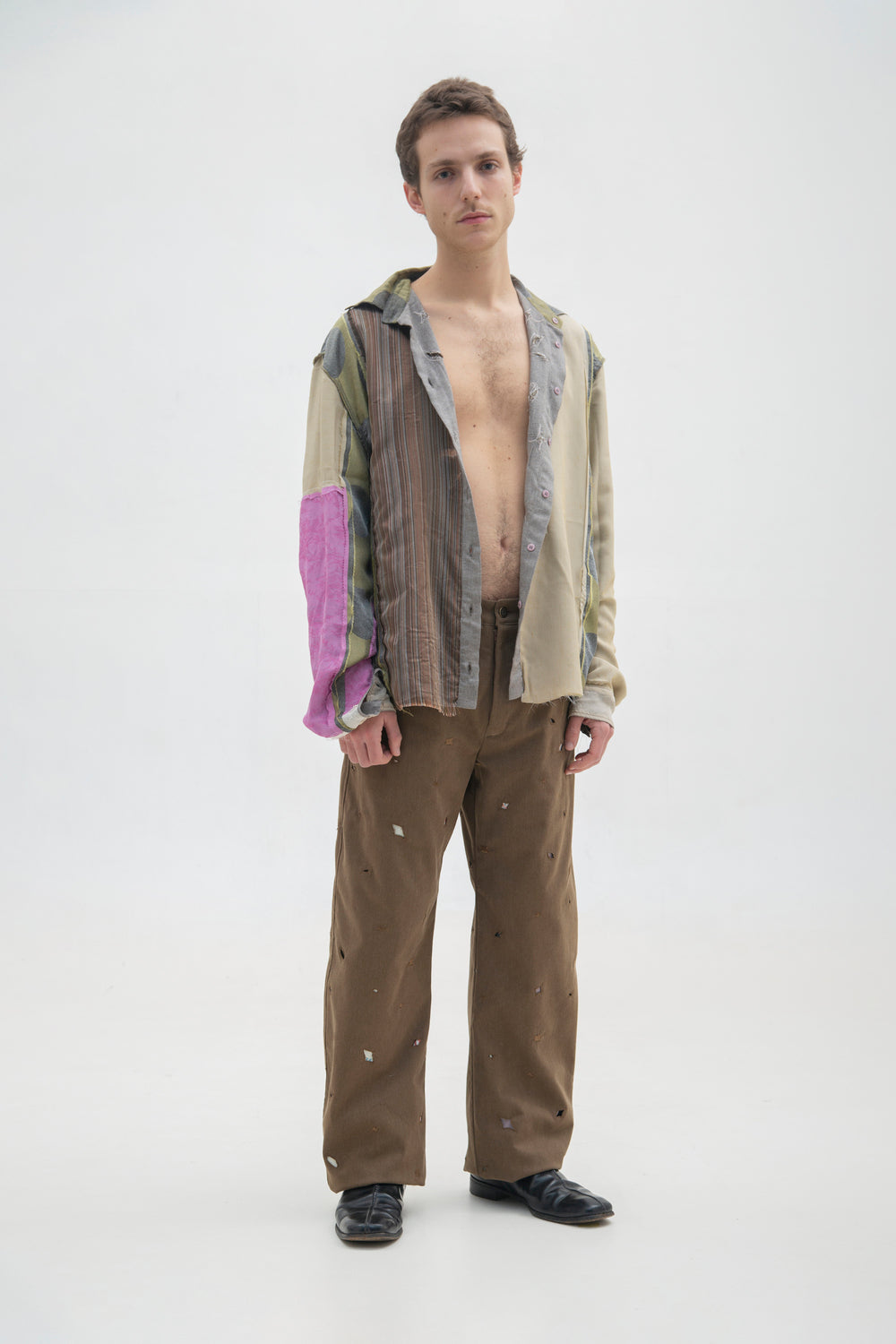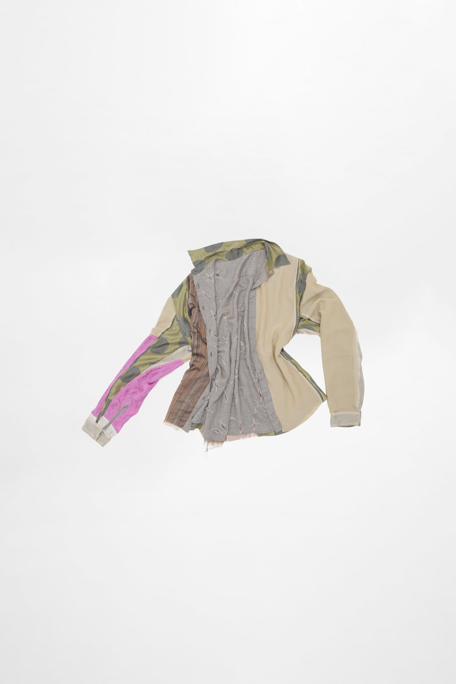 - Inside of the shirt made of patchwork of leftover fabrics.