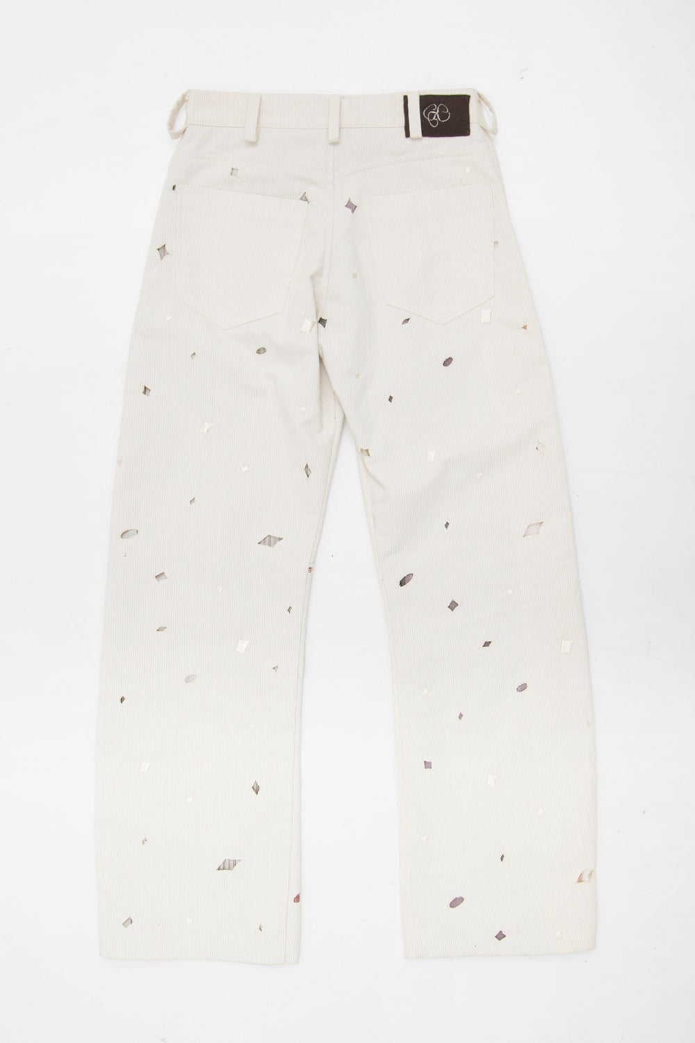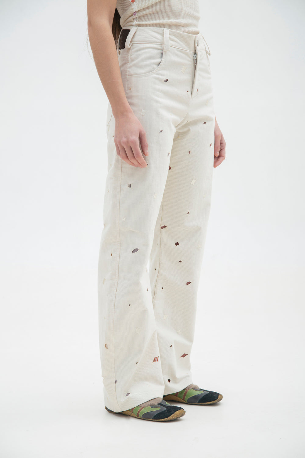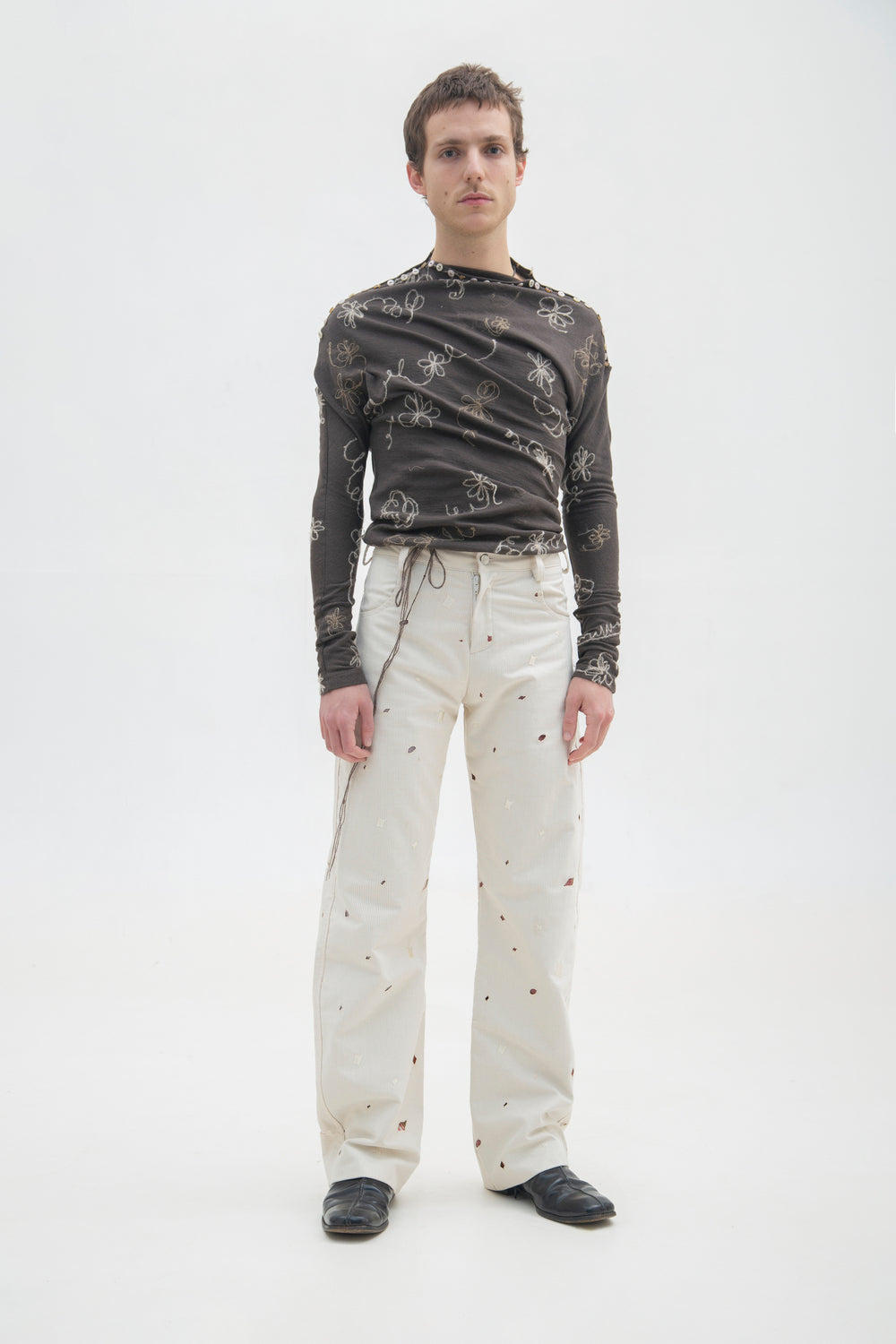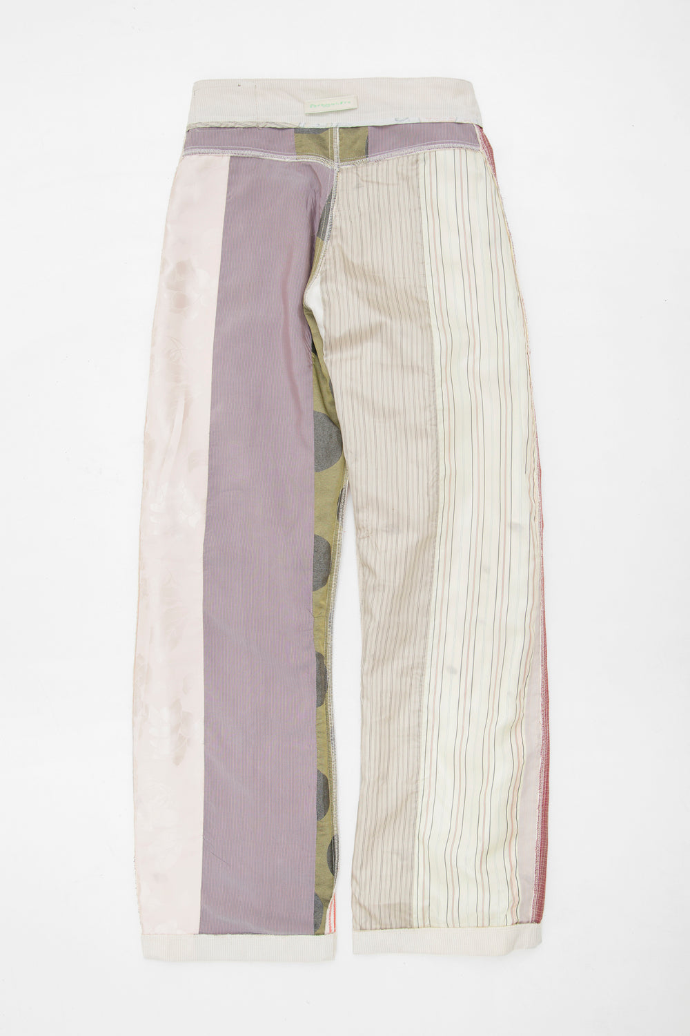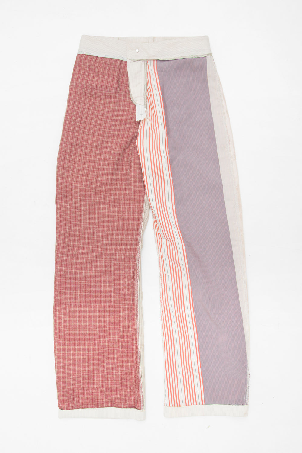 - The inside of the trousers is made of a patchwork of fabrics that will change in every reproduction.