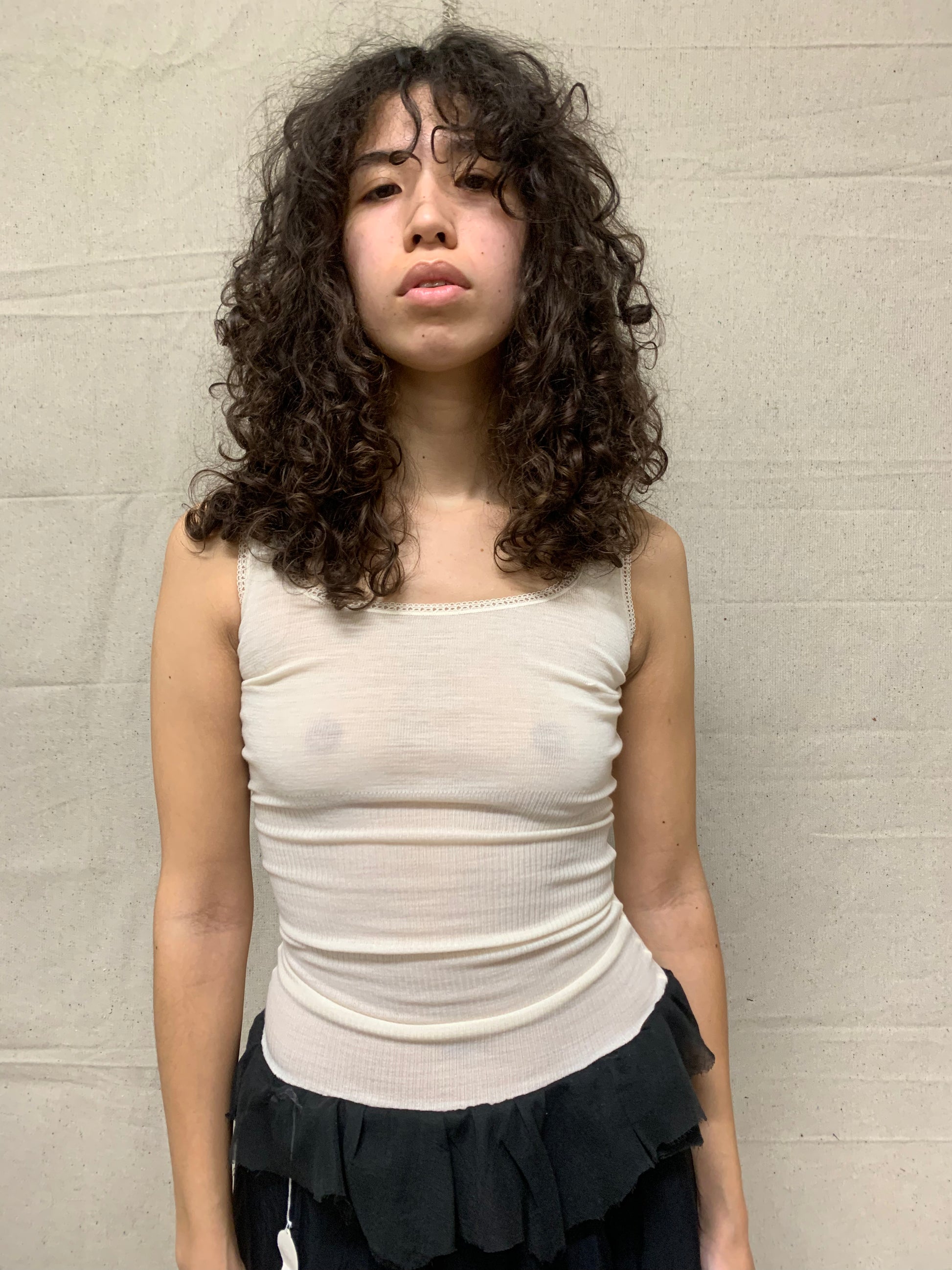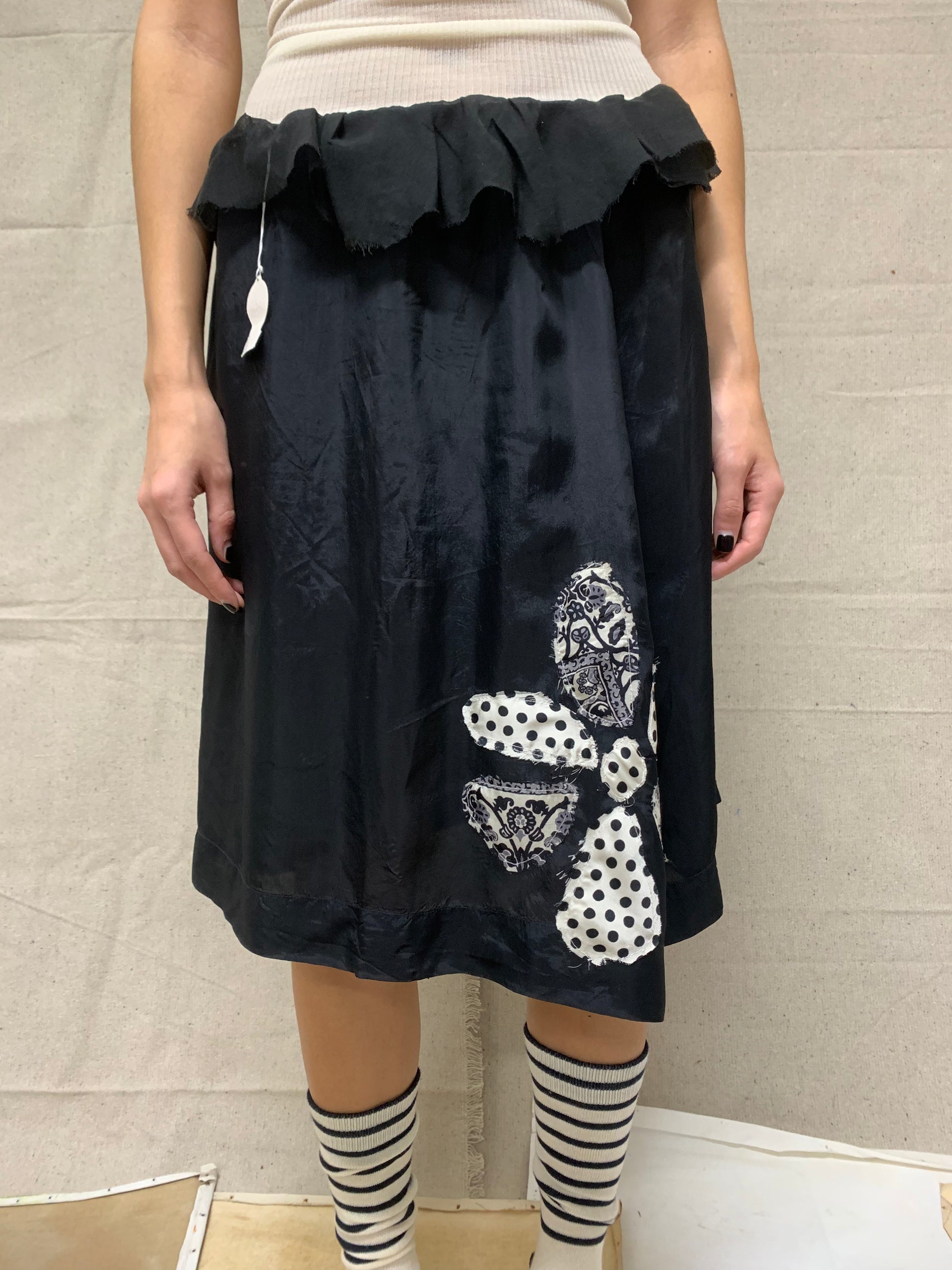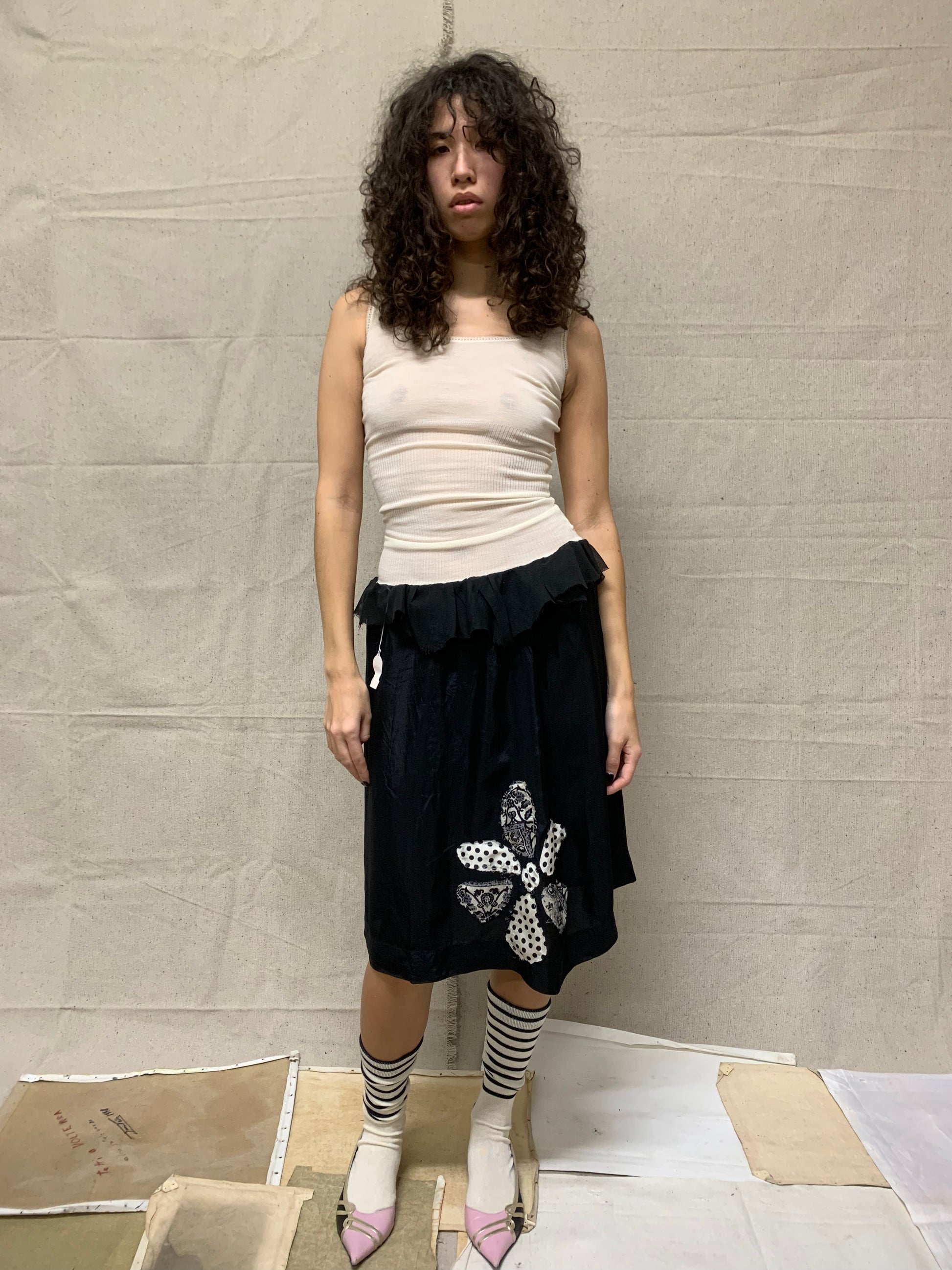 Dress composed of a tank top and skirt; the skirt features a flower-shaped patch